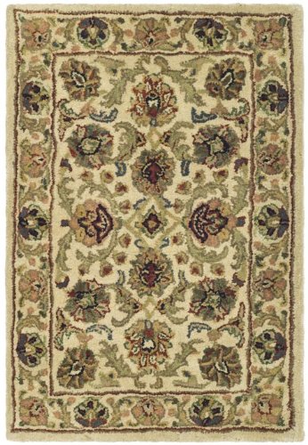 Safavieh's Classics Collection reinterprets some of the finest Persian and European designs. These rugs bring traditional sophistication and the authentic look and feel of these classic rugs. Each rug is made from 100% pure, premium wool. The finished rugs are given a luster wash to give the pile a plush, soft feel. The soft palettes and open fields make these rugs easy to match to any decor. Each rug has a dense, soft pile, and excellent quality, to ensure that you will enjoy the look and feel of your rug for years to come. The handmade, hand-tufted construction adds durability to this rug, ensuring it will be a favorite for many years Each rug is handmade with 100% pure, premium wool and is given a luster wash to give it a plush, soft feel This traditional rug will give your room an elegant accent This rug features an ivory background and border, and displays stunning panel colors in shades of green, gold, ivory and red This rug measures 5-feet by 8-feet