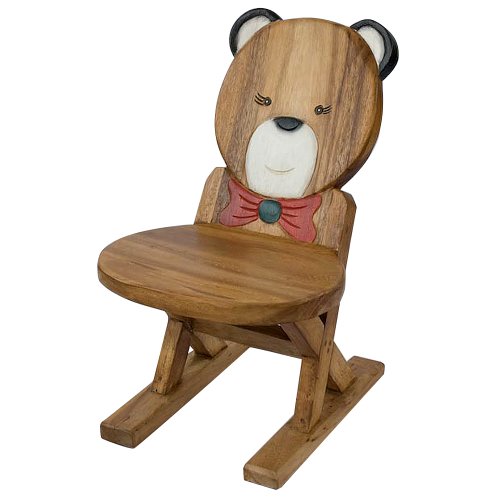Turn study, play and rest time into a fun forest excursion with this super cute yet elegantly classic children’s folding chair. Handcrafted by skilled Thai artisans, the reclining back of this wonderful chair features a hand-carved teddy bear face rendered in charming rustic detail. The bear’s face and bowtie are accented with child-safe, lead-free paint in white, black navy and red, a versatile color palette which blends seamlessly into any existing decor. The chair frame is hand-carved from gorgeous, sturdy acacia wood, which is native to northern Thailand. A smooth application of stain brings out the wood’s natural warmth, while multiple coats of soft wax provide a smooth, glowing finish. The sled legs and crisscrossed supports provide superb stability. Rigorously tested and certified compliant with all industry and federal safety requirements. Measures 21.5 in. H x 17 in. L x 12.5 in. W with a seat height of 10 in. AsiaEXP brings you children’s furniture of exceptional quality from a variety of world cultures. With this purchase, you are not only receiving a beautiful decor accent, you are also supporting a great cause. By shopping with us you help to sustain talented Asian artisans and to preserve the rich cultural heritage of Asia. The handcrafted nature of this item will produce minor differences in design, color and sizing. Subtle variations will occur from piece to piece, adding to the unique quality of individual creations. Measurements may vary slightly. Features hand-carved, sturdy acacia wood frame with a bear face rendered in charming rustic detail Bear?s face and bowtie are accented with child-safe, lead-free paint in white, black navy and red Fold-away design makes this piece a space-saver, while sled legs provide exceptional stability Multiple coats of soft wax provide a smooth, glowing finish 21.5 in. h x 17 in. l x 12.5 in. w