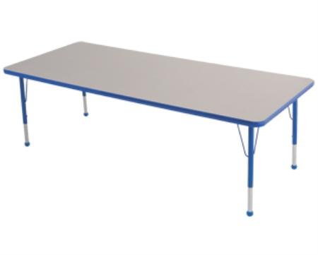 Ecr4kids 30x72 Thermoplastic Adjustable Fade-Resistant Rectangular Shaped Edgebanded Kids Resin Activity Table (19-30 Legs) - Blue
