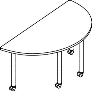 60W x 30D Half-Round Table W/Locking Casters