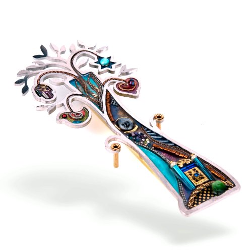 Each piece is truly like a miniature artwork, the intricate design is hand painted and set within a stainless steel frame. Austrian crystals, beads and a variety of other materials are delicately assembled and set in artists resin resulting in a beautifully finished and durable piece. Truly a work of art, this Mezuzah Case is exceptionally well made and is produced in limited editions. The Mezuzah is a ceremonial object. The mitzvah or commandment of placing a Mezuzah is derived from Deuteronomy 6:4-9 "inscribe them on the doorposts of your house and on your gates". A Mezuzah is mounted on every doorway in a Jewish home. Included are mounting screws or nails, a photocopy and a translation of the Mezuzah scroll or the "Shema" prayer, and placement instructions. Our Mezuzah cases can also be mounted outdoors, preferably under an overhang. A Kosher Mezuzah Scroll, handwritten by a scribe in Israel is available separately from Seeka. Each Mezuzah Case is truly like a miniature artwork. Hand painting, with a variety of materials meticulously arranged inside Can be mounted indoors or outdoors under an overhang Includes mounting screws a copy and a translation of the Mezuzah scroll, and placement instructions Kosher, hand written scroll from Israel, available separately from Seeka
