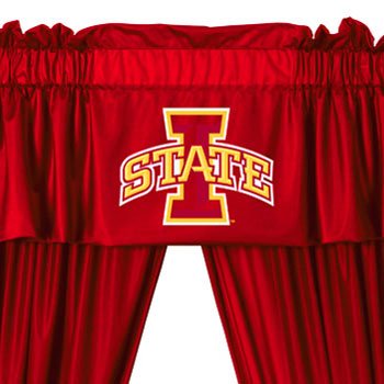 Pattern: NCAA Iowa State Cyclones. Valance has screen-printed logo as pictured. Curtains do not have logo on them. Rod pocket drapes suitable for drapery rods up to a 1.5 inch diameter. Two rod pocket curtain panels totally measuring 82 inches wide (horizontal) x 63 inches long (vertical) or 208 x 160 cm. Includes two matching tie-backs. One valance with screen-printed logo 88 inches wide (horizontal) x 14 inches long (vertical) or 224 X 36 cm. This sale is only for the curtains & valance set described. Other items pictured are for illustration only. Pattern: NCAA Iowa State Cyclones. Valance has screen-printed logo as pictured. Curtains do not have logo on them. Rod pocket drapes suitable for drapery rods up to a 1.5 inch diameter. Two rod pocket curtain panels totally measuring 82 inches wide (horizontal) x 63 inches long (vertical) or 208 x 160 cm. Includes two matching tie-backs. One valance with screen-printed logo 88 inches wide (horizontal) x 14 inches long (vertical) or 224 X 36 cm.