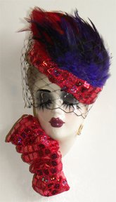 Lady Face Mask with Red Hat and Purple Feathers